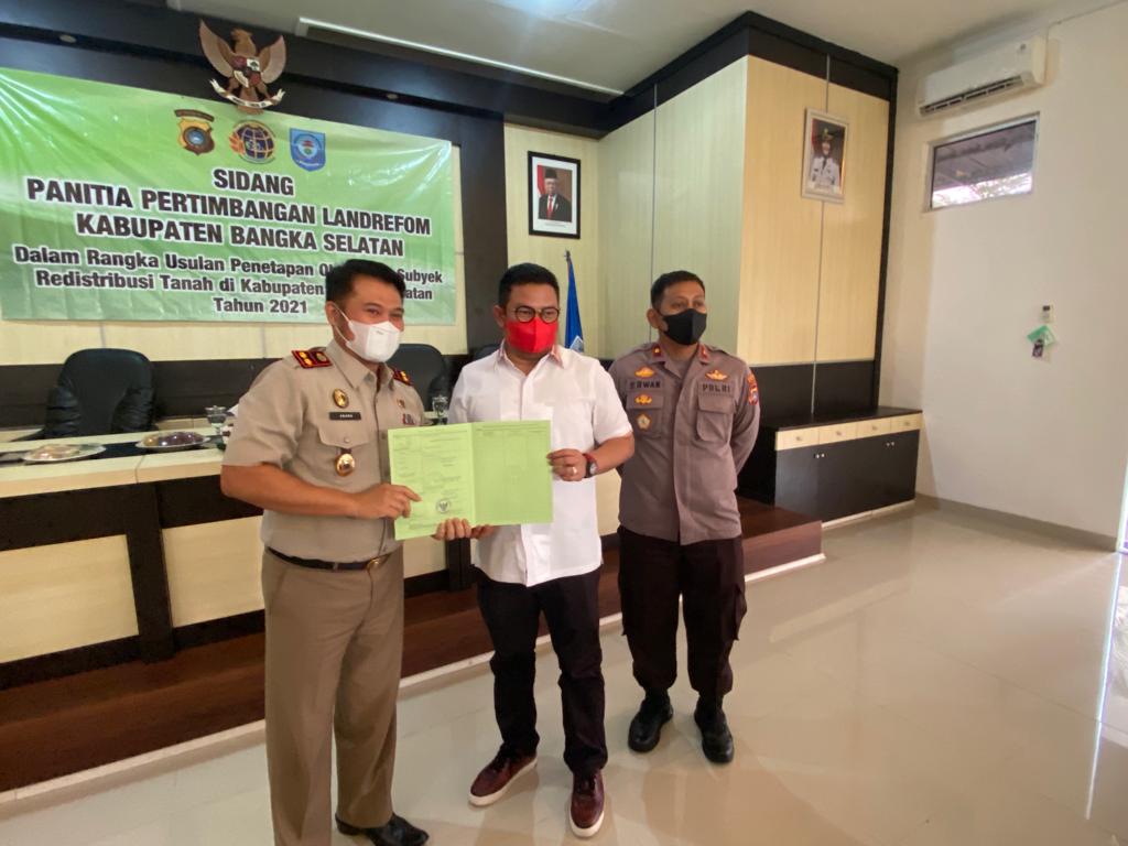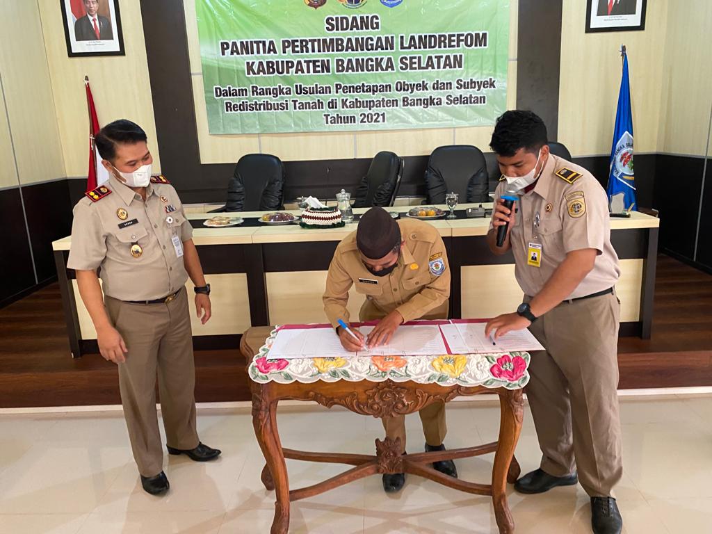 Acara Sidang Pertimbangan Landreform Kabupaten Lebak dilaksanakan di Ruang Rapat Gunung Namak Kantor Bupati Kabupaten Lebak pada hari Selasa tanggal 16 November 2021 dihadiri langsung oleh Bupati Kabupaten Lebak, H. Riza Herdavid, S.T., M.Tr.IP. Kepala Kantor Pertanahan Kabupaten Lebak, Agung Basuki, S.ST., M.H., Wakil Kepala Kepolisian Resor Kabupaten Lebak, Kompol Erwan Yudha Perkasa, Para Kepala Dinas OPD terkait, Kepala Kesatuan Pengelola Hutan Produksi (KPHP) Unit VIII Kabupaten Lebak (Muntai Palas), Kepala Seksi Penataan dan Pemberdayaan Kantor Pertanahan Kabupaten Lebak, Ketua HKTI Kabupaten Lebak, Camat Toboali, Air Gegas, Payung, Simpang Rimba, Pulau Besar dan Lepar Pongok serta para kepala desa yang wilayahnya menjadi objek identifikasi subjek dan objek redistribusi tanah.